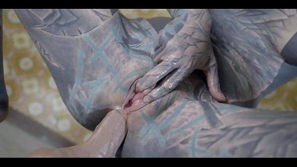 Modello di TATUAGGIO alternativo che si masturba con un grosso giocattolo